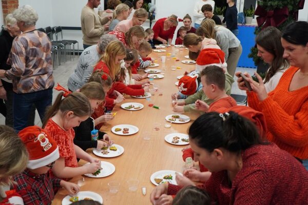 Z kolei na zajęciach kulinarnych dekorowały pierniki dla św. Mikołaja. Ciasteczka według tajnego przepisu upiekły panie z Klubu Seniora w Dzierzkowicach, które nadzorowały pracę małych dekoratorów. Pachnące smakołyki dzieci mogły zabrać do domów, ale w wielu przypadkach okazało się to niemożliwe, ponieważ zaraz po ozdobieniu pyszne pierniczki zostały na miejscu skonsumowane.