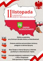 Poczty sztandarowe, delegacje gminnych władz samorządowych, szkół i jednostek OSP oraz inni mieszkańcy gminy zbiorą się przy Gminnym Ośrodku Kultury w Dzierzkowicach. Uczestnicy obchodów najpierw złożą wieńce i kwiaty przy Pomniku Żołnierzy Poległych w Obronie Ojczyzny, a o 9.15 w miejscowym kościele zostanie odprawiona uroczysta msza święta.