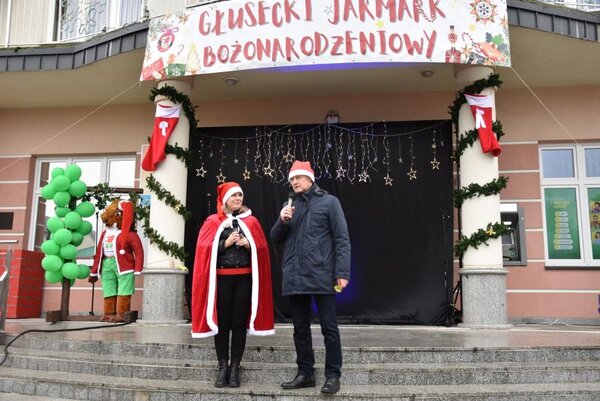 W imieniu organizatorów uczestników drugiego Głuseckiego Jarmarku Bożonarodzeniowego w niedzielę 7 grudnia powitali dyrektor Biblioteki - Centrum Kultury w Dominowie Agnieszka Stępniak i wójt gminy Głusk Jacek Anasiewicz, który otworzył kiermasz symbolicznie dźwiękiem świątecznego dzwoneczka.