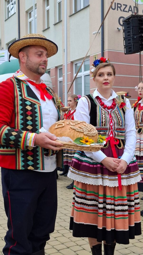 Ceremoniom dożynkowym przewodniczyli starosta i starościna. Tę zaszczytną funkcję pełnili w tym roku Joanna Gęca z Nowin i Łukasz Zarzecki z Głuszczyzny, którzy zgodnie z tradycją na uroczystość w centrum gminy Głusk w Dominowie przyjechali bryczką. Po dotarciu na plac przed urzędem gminy najpierw częstowali gości słodkościami, a potem stanęli na czele korowodu dożynkowego. Ustawiło się w nim 17 delegacji z wieńcami dożynkowymi i koszami, pełnymi warzyw i owoców z miejscowych ogrodów działkowych.