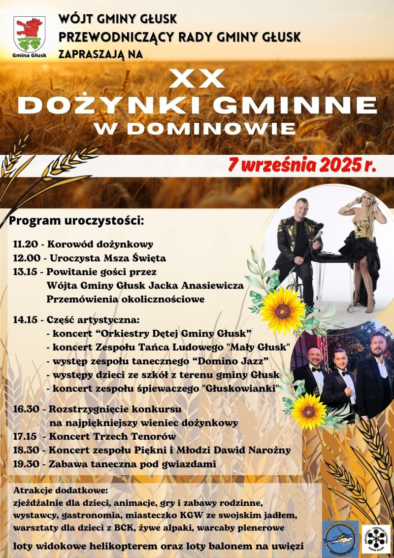 Joanna Gęca z Nowin i Łukasz Zarzecki z Głuszczyzny będą pełnić w tym roku funkcje starostów podczas Dożynek Gminy Głusk. Rolnicy podziękują za plony w pierwszą niedzielę września w Dominowie.