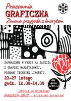 Uczestnicy zajęć w pracowni graficznej, która będzie czynna od 23 do 27 lutego, nauczą się techniki linorytu. Warsztaty są adresowane do dzieci w wieku co najmniej 10 lat, a spotkania będą się odbywać między 12.00 a 14.00 w Dominowie.