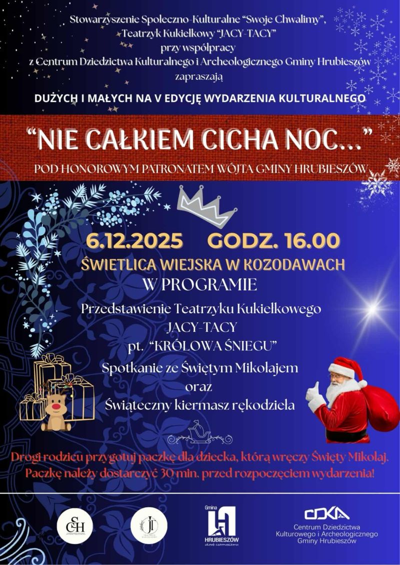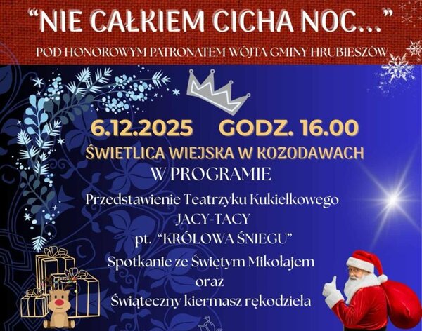 Świetlica w Kozodawach w gminie Hrubieszów jak zwykle przed świętami zamienia się w salę teatralną. Trwają przygotowania do kolejnej premiery Teatrzyku Kukiełkowego "Jacy - Tacy", która będzie ważnym elementem cyklicznego wydarzenia pod nazwą "Nie całkiem cicha noc". Widowisko, które będzie można obejrzeć w sobotę 6 grudnia o 16.00, będzie połączone z wizytą św. Mikołaja i bożonarodzeniowym kiermaszem.
