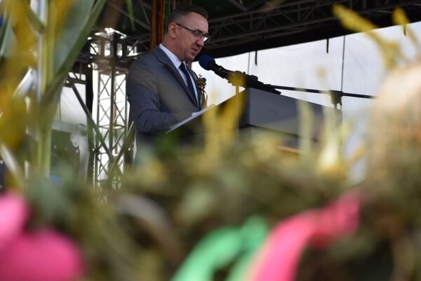 Uroczystość rozpoczęła się barwnym korowodem z orkiestrą dętą, w którym szły poczty sztandarowe, delegacje wieńcowe poszczególnych gmin, mieszkańcy i starostowie dożynkowi. Funkcje starostów pełnili Agnieszka Korolska ze Ślipcza i Sławomir Żołdak z Łotoszyn.