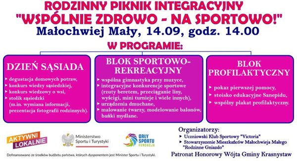 Piknik pod patronatem wójta gminy Krasnystaw Wojciecha Kowalczyka rozpocznie się o 14.00 na boisku w Małochwieju Małym i będzie podzielony na trzy bloki. Pierwszym będzie "Dzień sąsiada", obchodzony przy stolikach z domowymi potrawami, konkursami i wspomnieniami. Będzie bowiem można oglądać zdjęcia z rodzinnych archiwów, a także brać udział w konkursach wiedzy o lokalnej społeczności.
