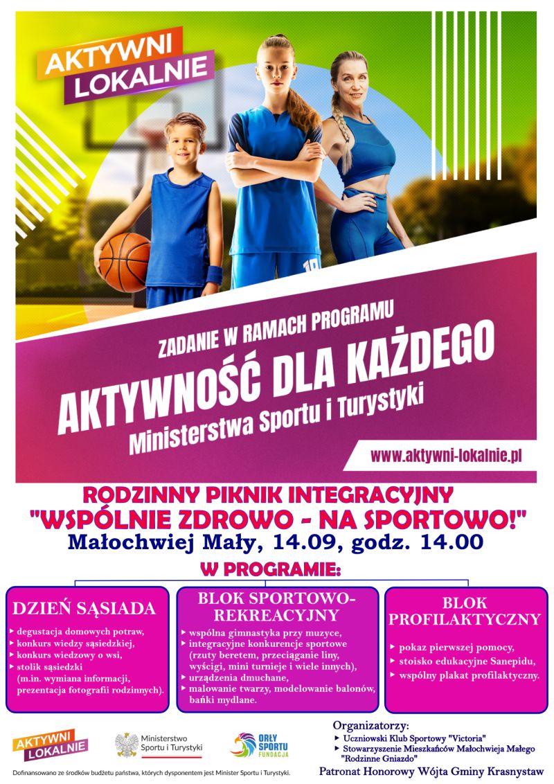 Był mecz piłkarski, a w najbliższy weekend będzie Rodzinny Piknik Integracyjny. Uczniowski Klub Sportowy "Victoria", działający przy Szkole Podstawowej w Małochwieju Dużym w gminie Krasnystaw, zaprasza w niedzielę 14 września na drugie wydarzenie w ramach projektu "Wspólnie zdrowo - na sportowo".