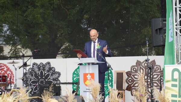 Witając uczestników niedzielnej uroczystości wójt gminy Krasnystaw Wojciech Kowalczyk podkreślał, że dożynki mają przede wszystkim wymiar duchowy i są wyrazem pokory człowieka wobec geniuszu Boga. - Od tysięcy lat, niezależnie od coraz doskonalszej techniki, żyjemy w oparciu o naturalny rytm, w którym ziemia wydaje plon i nas karmi. Dzisiaj jest szczególny dzień, w którym dziękujemy Bogu za obfitość plonów - mówił wójt gminy Krasnystaw. Zwracając się bezpośrednio do rolników Wojciech Kowalczyk życzył im m.in. wdzięczności społecznej i szacunku dla pracy, którą wykonują, a także godnej zapłaty i mądrości rządzących, podejmujących decyzje w sprawach polskiej wsi.
