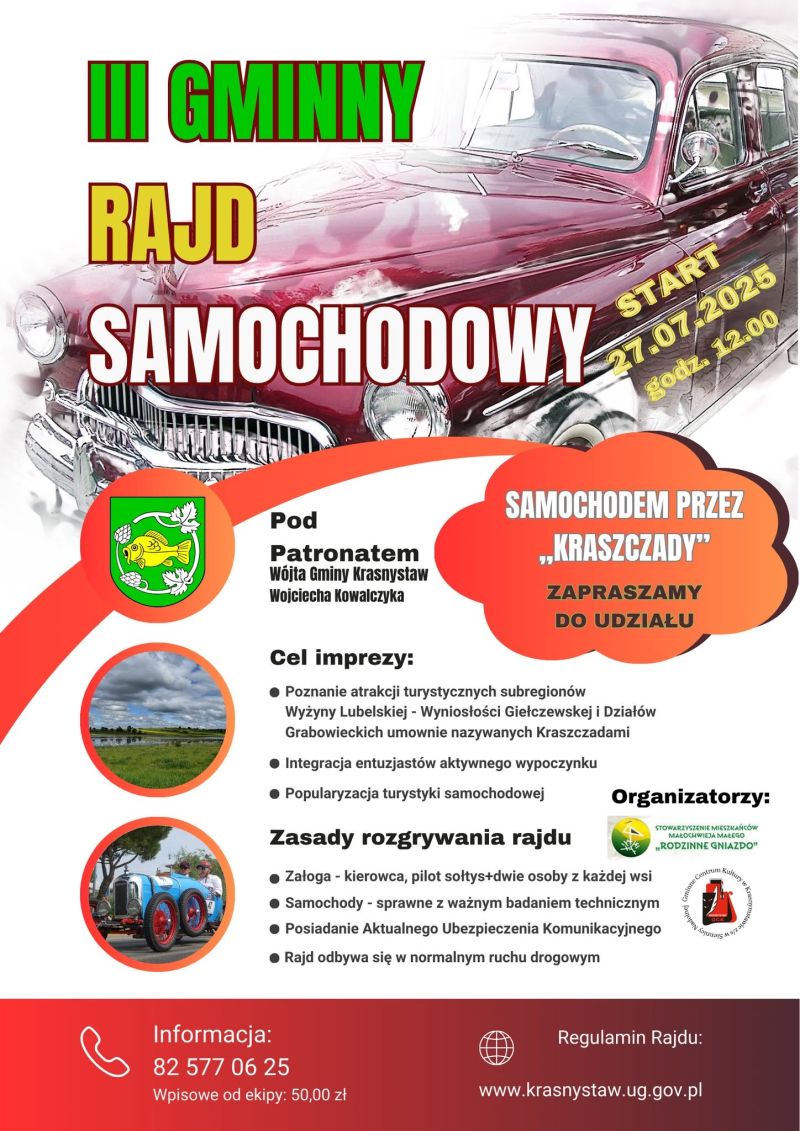 Jechali już przez miasto i gminę Krasnystaw, potem otulinę Skierbieszowskiego Parku Krajobrazowego, a teraz pojadą przez gminy Krasnystaw i Izbica. Uczestnicy trzeciego Rajdu Samochodowego Gminy Krasnystaw wyruszą na trasę w ostatnią niedzielę miesiąca, ale lista chętnych zostanie zamknięta prawie tydzień wcześniej. Organizatorzy ogłosili właśnie szczegóły tegorocznej wyprawy.