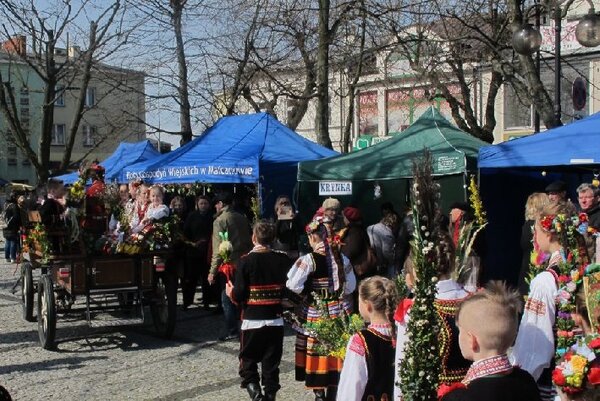 Świąteczny kiermasz otworzył barwny korowód z palemkami wielkanocnymi z udziałem członków Gminnego Dziecięcego Zespołu Pieśni i Tańca "Jata", który przygotował krótką część artystyczną. Potem goście niedzielnej imprezy odebrali życzenia od marszałek Mazurek i wójta Osiaka, a dzieci z zespołu "Jata" częstowały pisankami.