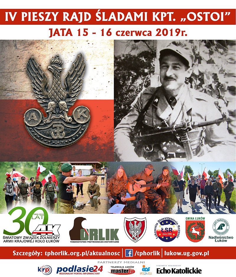 Do udziału w tegorocznej eskapadzie zachęcają łukowskie koło ŚZŻAK i Towarzystwo Przyrodniczo-Historyczne "Orlik" oraz ich partnerzy, którymi są: Łukowskie Stowarzyszenie Rozwoju, Mazowieckie Towarzystwo Strzeleckie im. Marszałka Józefa Piłsudskiego, gminy Łuków i Wiśniew oraz Nadleśnictwo Łuków. Jednym z patronów medialnych rajdu jest Informacyjna Agencja Samorządowa.