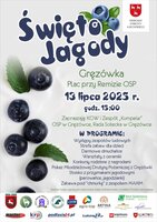 Od 15.00 na placu przy miejscowej remizie OSP miłośnicy jagód będą rozkoszować się smakiem parowańców i jagodzianek oraz korzystać z innych atrakcji, także tych "pozakulinarnych". Będzie strefa zabaw dla dzieci, warsztaty lepienia wyrobów z gliny z Agatą Krasuską z Pracowni "Aftyka" w Gręzówce, pokaz Młodzieżowej Drużyny Pożarniczej miejscowej OSP oraz rodzinne konkursy, w których będzie można wygrać m.in. romantyczną kolację lub karnety na zabiegi kosmetyczne.