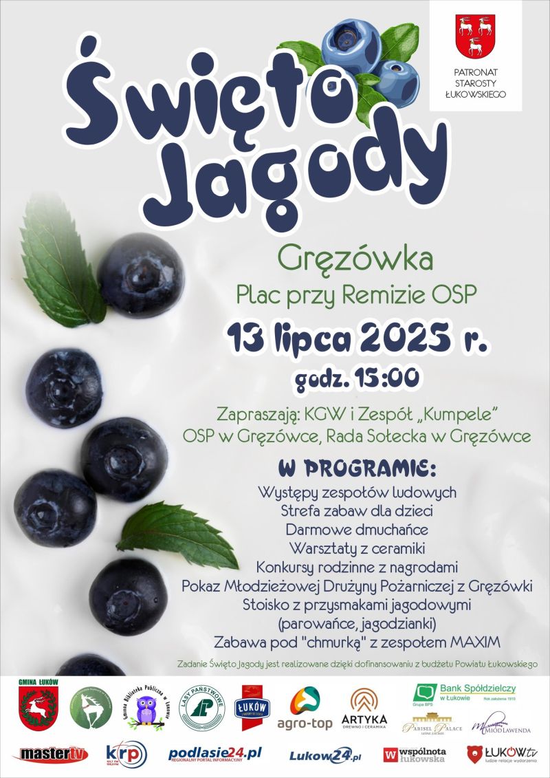 Zbierać jagody nie każdy lubi, ale grono smakoszy tych leśnych owoców jest zdecydowanie większe. Z myślą o nich od dziesięciu lat w Gręzówce w gminie Łuków odbywa się "Święto Jagody". Na jubileuszową imprezę organizatorzy zapraszają w niedzielę 13 lipca.