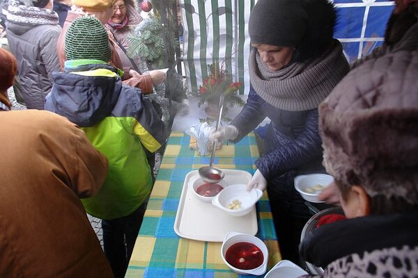 Na stołach królowała kapusta z grzybami, pierożki, żurek, chleb pieczony na zakwasie, makowce, pierniki i inne świąteczne ciasta, a panie z Koła Gospodyń Wiejskich "Gołąbeczki" z Gołąbek częstowały barszczykiem z uszkami. Wśród ozdób dominowały barwne, misternie zdobione stroiki, bombki, choinki i anioły.