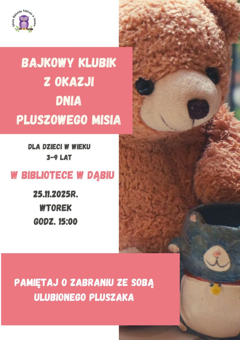 Towarzyszy dzieciom przez długie lata, bywa powiernikiem tajemnic, pomaga zasypiać, czasem rozśmiesza i pociesza w smutku. Pluszowy miś, bo o nim mowa, od 22 lat ma w kalendarzu swoje święto. We wtorek 25 listopada uczczą je mali czytelnicy Biblioteki Publicznej w Dąbiu w gminie Łuków.