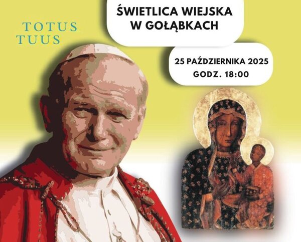 W sobotę 25 października o 18.00 w świetlicy wiejskiej w Gołąbach odbędzie się Papieski Dzień Pamięci, a dzień później w świetlicy w Jeziorach mieszkańcy spotkają się o 16.00 na wieczornicy patriotyczno-religijnej pod hasłem "Pamiętając o historii - idziemy w przyszłość".