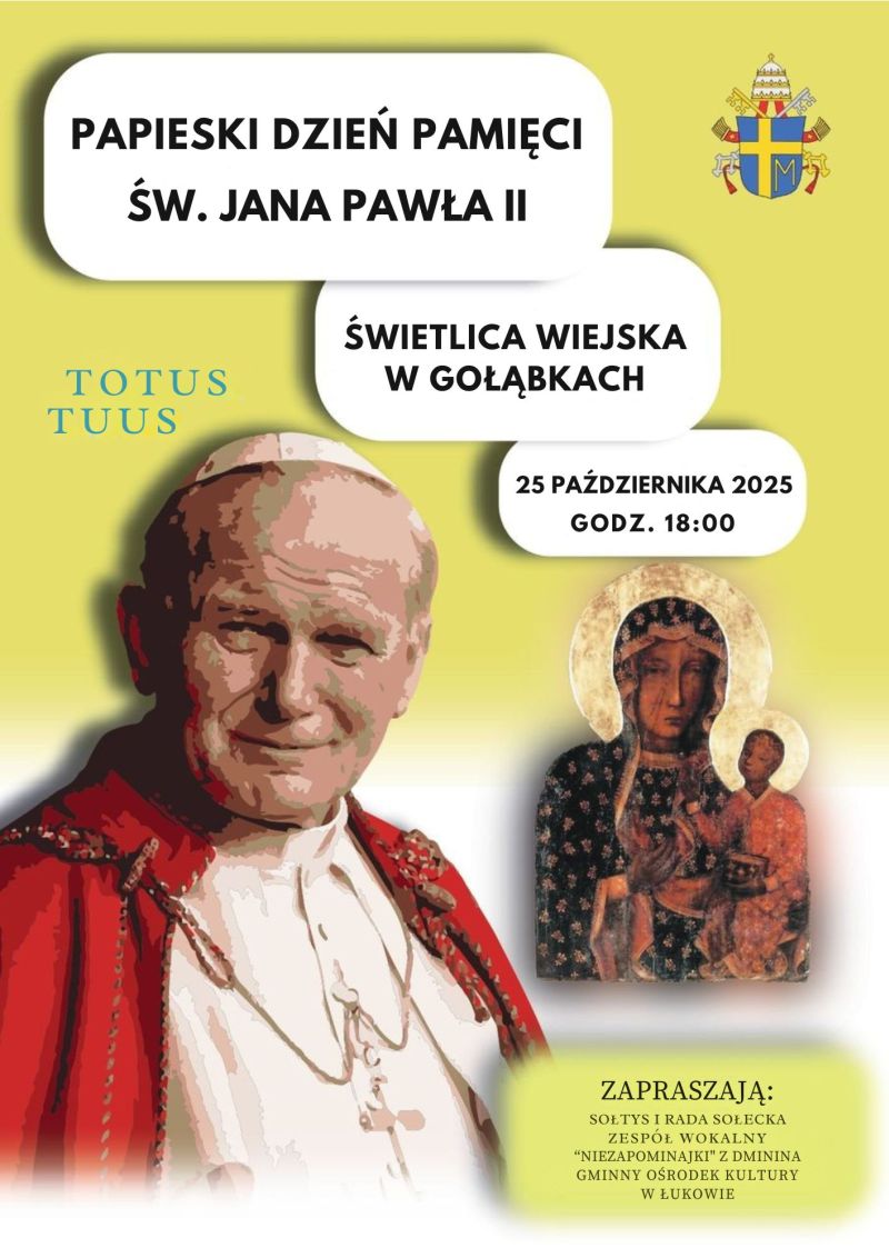 Mieszkańcy gminy Łuków uczczą 47. rocznicę wyboru Karola Wojtyły na papieża. W najbliższy weekend miejscowy ośrodek kultury i jego partnerzy zapraszają do Gołąbek i Jezior.