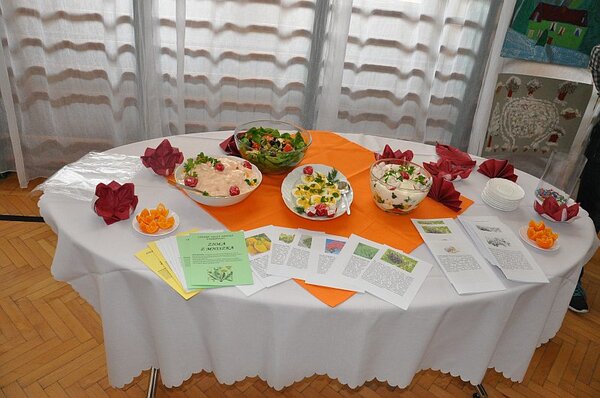 Po części artystycznej był czas na degustację zdrowych potraw, także przygotowanych przez uczestników projektu, a przy okazji kosztowania pyszności każdy mógł się zaopatrzyć w ulotki promujące zioła.