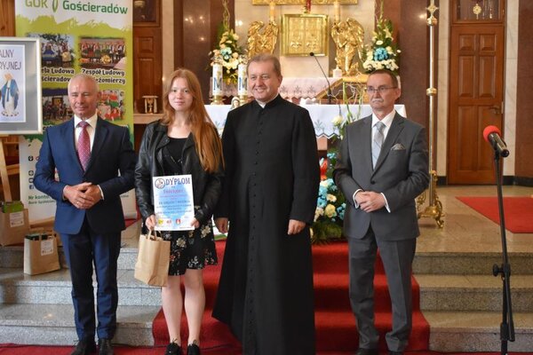 Podczas niedzielnej gali wręczali je: proboszcz parafii w Księżomierzy ks. kanonik Józef Hałabis, wójt gminy Gościeradów Mariusz Szczepanik i starosta kraśnicki Andrzej Rolla, wspierani przez członka zarządu powiatu Marka Kołtuna i dyrektora Gminnego Ośrodka Kultury w Gościeradowie Romana Bissa.