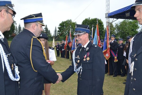 Przyznawanymi przez prezydenta RP Brązowymi Krzyżami Zasługi zostali odznaczeni: komendant gminny Paweł Babiracki i prezes OSP Gościeradów Roman Mochol. Złotym Znakiem Związku OSP RP został uhonorowany Adam Jaworek, który wstąpił do straży w 1972 roku, a wieloletni naczelnik i komendant gminny Krzysztof Pawłowski jako pierwszy strażak w gminie odebrał Medal Honorowy im. Bolesława Chomicza, przyznawany przez Zarząd Główny Związku OSP RP. Ponadto Ryszard Gołąb, Wiesław Żyła i Stanisław Goch zostali wyróżnieni Złotymi Medalami za Zasługi dla Pożarnictwa, Stanisław Murdzyński i Halina Trela otrzymali srebrne medale, a kolejnych 10 druhów - brązowe. W tej ostatniej grupie był m.in. wójt Mariusz Szczepanik, a jedyną odznakę Strażak Wzorowy otrzymał Zbigniew Kozłowski.