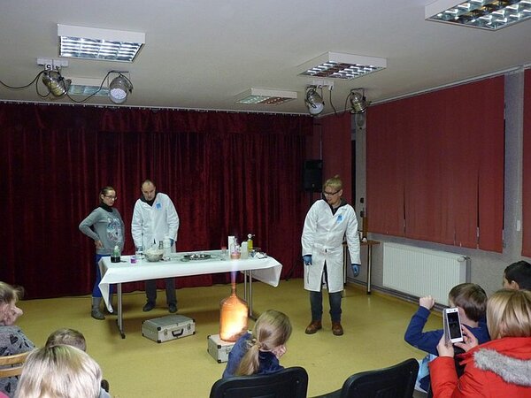 Finisz tegorocznych ferii był iście wybuchowy, ponieważ biblioteka zaprosiła dzieci i młodzież do czynnego udziału w pokazie chemicznym. Razem z przedstawicielami Fundacji Art of Science uczestnicy zajmowali się, na przykład mieszaniem różnych cieczy i szukaniem odpowiedzi na pytanie jak działa silnik rakietowy?