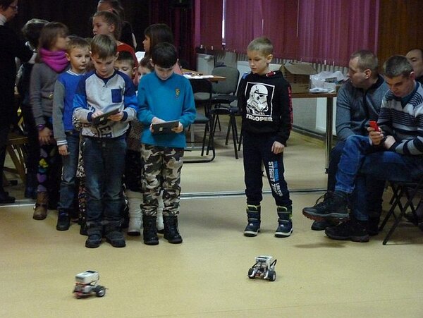 Na zajęciach z papieroplastyki dzieci uczyły się jak wykonać zwierzątka i ludziki za pomocą drobnych elementów, kleju i kolorowej tektury, a w czasie zajęć z robotyki brały udział w wyścigach robotów.