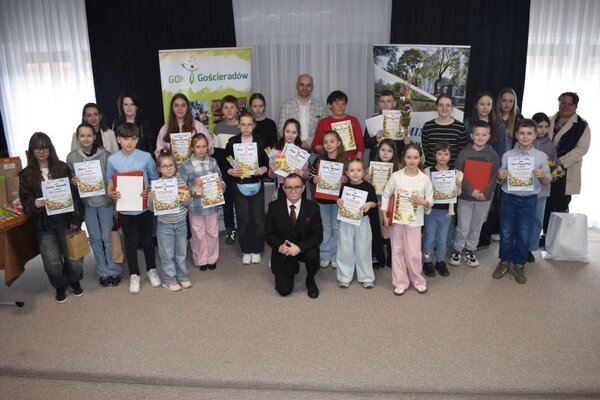 Podczas czwartkowej uroczystości w Gminnym Ośrodku Kultury w Gościeradowie laureaci otrzymali nagrody, a wszyscy uczestnicy konkursu odebrali upominki. Wręczyli je wójt Mariusz Szczepanik i jego zastępca Krzysztof Galant w asyście dyrektor GOK Emilii Mazur.