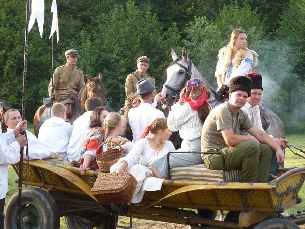 Po ubiegłorocznym, krótkim pokazie musztry oraz władania lancą i szablą, tym razem organizatorzy rozszerzyli ten punkt obchodów, zapraszając gości do obejrzenia inscenizacji Bitwy pod Komarowem. W role bohaterskich ułanów, polskiej ludności cywilnej i bestialskich kozaków wcielili się członkowie Ochotniczej Kawalerii Rzeczypospolitej i Kawalerii Kowalów z Borowa nad Wisłą im. 24. Pułku Ułanów z Kraśnika na czele z Łukaszem Kowalem z Borowa i Rochem Kowalskim z Krakowa. Widowisko z nastrojową muzyką i komentarzem Agaty Kowal było finansowane przez Wójta Gminy Gościeradów.