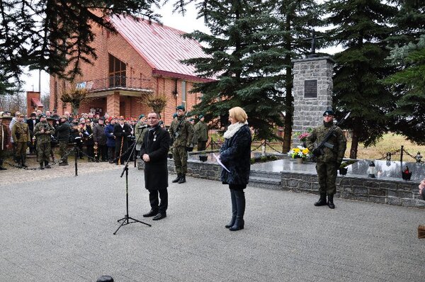 Podczas uroczystości wójt Mariusz Szczepanik odebrał od Związku Żołnierzy Narodowych Sił Zbrojnych "Medal pamiątkowy z okazji 75-lecia NSZ" za upowszechnianie pozytywnej pamięci o tej formacji, w tym wsparcie organizowanego od dwóch lat rajdu ku czci cichociemnego majora Leonarda Zuba-Zdanowicza "Zęba".