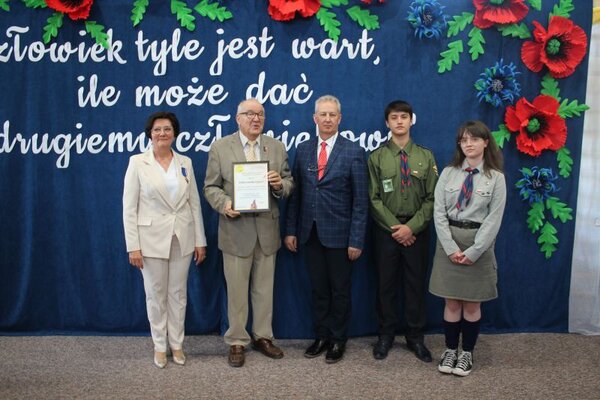Z kolei dyrektor Sajecka uhonorowała Ryszarda Zawadowskiego honorowym tytułem "Ambasadora Szkoły" za zasługi w promowaniu placówki.