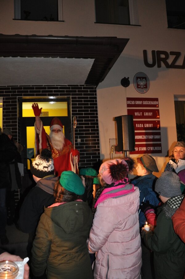Wtorkowe spotkanie było również okazją do oficjalnego włączenia lampek na choince, któremu towarzyszyły świąteczne życzenia od władz samorządowych i wspólne śpiewanie kolęd pod kierunkiem zuchów, harcerzy i pracowników Gminnego Ośrodka Kultury w Gościeradowie.