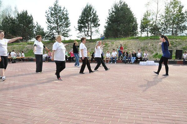 Panie z Klubu Seniora w Gościeradowie wzięły udział w ćwiczeniach rozciągających, a potem dzieci i dorośli uczestniczyli we wspólnych zajęciach aerobiku, które poprowadziła instruktorka Gminnego Ośrodka Kultury Alicja Pełka.
