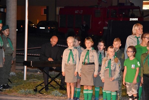 O 4.30 Szczepan Różycki z Kraśnika zagrał utwór skomponowany specjalnie z okazji okrągłej rocznicy wydarzeń, które 80 lat temu wpłynęły na dalsze losy całego świata. Około 4.45, tak jak we wrześniu 1939 roku, rozległ się dźwięk syren, a potem uczestnicy obchodów zaśpiewali hymn i wysłuchali historycznego komunikatu radiowego, ogłaszającego wybuch wojny.
