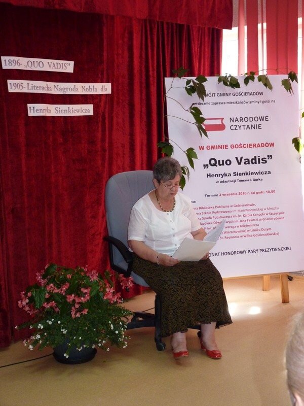 Uczestnicy akcji mogli też posłuchać "Quo vadis" w interpretacji Klary Berdys, Teresy Kamieniarz, Danuty Olech i Stanisławy Czajki z Klubu Seniora, zastępcy nadleśniczego Nadleśnictwa Gościeradów Roberta Guzka, Anety Stoli z Banku Spółdzielczego Ziemi Kraśnickiej, Anny Chołody współwłaścicielki firmy "IN-AGRA", Grażyny Goleń właścicielki "Metal-Marketu", Grzegorza Jaworka właściciela sklepu "Lewiatan" i Dominiki Drdzeń z firmy "Erkado".