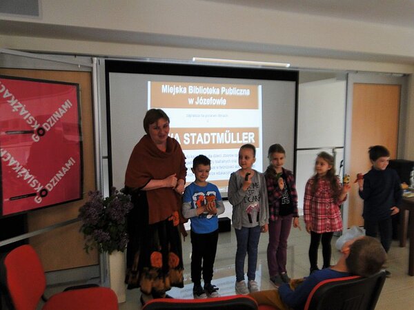 Wizyta Ewy Stadtmuller była szczególnie atrakcyjna dla najmłodszych czytelników, a czas spędzony z pisarką wypełniły zagadki, rymowanki i krótka inscenizacja o smoku wawelskim, który nie tylko zieje ogniem, ale również bardzo lubi czytać. Forma spotkania sprawdziła, się a jednym z efektów była długa kolejka do autorki po autografy na świeżo zakupionych jej książkach.