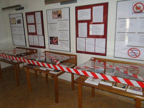 Namiastkę atmosfery cenzury i ograniczeń potęgował wystrój biblioteki z taśmami na drzwiach wejściowych i gablotach, informacją o tym, że do budynku wchodzi się na własną odpowiedzialność i stanowiskiem kontroli wypożyczanych książek.
