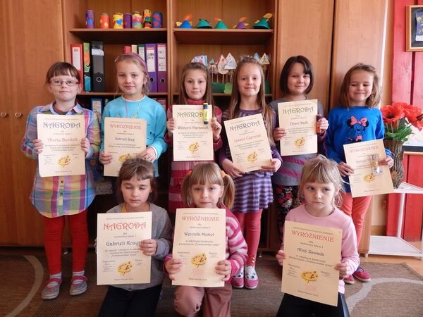 Jurorzy przyznali też siedem wyróżnień dla: Wiktorii Bajan i Daniela Serafina z "zerówki", Gabrieli Bieg, Amelii Buczkowskiej, Patrycji Tracz, Alicji Zawady i Weroniki Momot z klasy pierwszej. Konkurs dla młodych plastyków zorganizowały Anna Krzaczek, Anna Gontarz, Beata Harasiuk i Joanna Łepik.