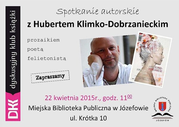 Prozaik, poeta i felietonista Hubert Klimko-Dobrzaniecki będzie gościem Dyskusyjnego Klubu Książki, działającego w Miejskiej Bibliotece Publicznej w Józefowie w powiecie biłgorajskim. Spotkanie autorskie odbędzie się w środę 22 kwietnia o 11.00.