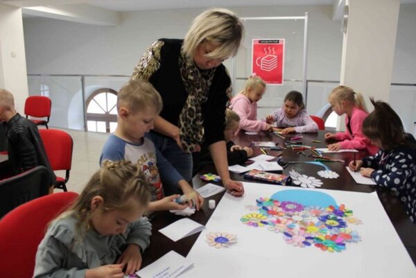 W środę 14 maja bibliotekę odwiedziły dzieci z Przedszkola w Józefowie, które wzięły udział w zajęcia na temat miasta, a efektem pracy przedszkolaków była wspólna kartka urodzinowa dla Józefowa z okazji 300-lecia.
