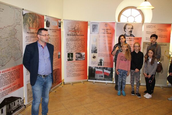 Na patriotyczną ekspozycję składa się z 10 plansz na rolapach, dzięki czemu będzie mogła być wypożyczana do innych bibliotek i szkół, nie tylko w gminie Józefów. Wystawę otwiera cytat Marszałka Józefowa Piłsudskiego: "Rok 1863 stoi na przełomie naszych dziejów stara Polska umiera - nowa się rodzi". W opracowaniu ekspozycji, na którą składają się zdjęcia i dokumenty, mapy bitew w Królestwie Kongresowym oraz informacje o ważnych postaciach powstania z lat 1863 - 1864, ogromny udział miał biłgorajski regionalista i miłośnik historii Tomasz Brytan. Jak mówił podczas otwarcia wystawy, gdyby chcieć ułożyć zgromadzone przez niego książki o Powstaniu Styczniowym mogłyby one utworzyć szlak o długości nawet 1 kilometra.