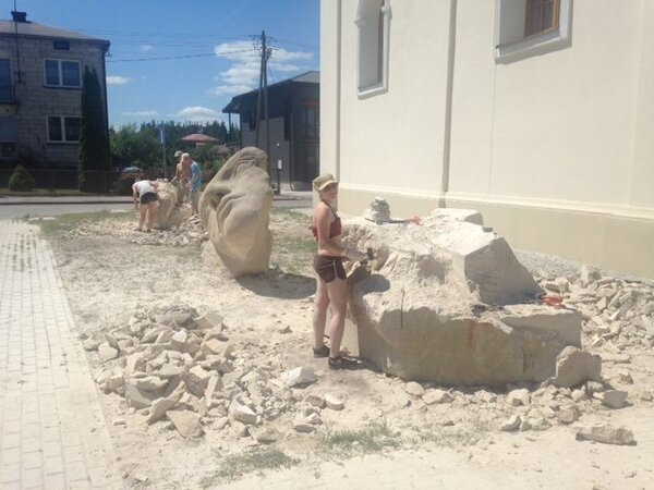 Tę pierwszą grupę nie tylko widać, ale i słychać, ponieważ młodzi rzeźbiarze tym razem pracują młotami, piłami i innymi narzędziami w rejonie Miejskiej Biblioteki Publicznej w Józefowie. Organizatorzy przygotowali dla nich ogromne kamienie, z których mają powstać trzy rzeźby, a ich wspólnym tematem będzie literatura.