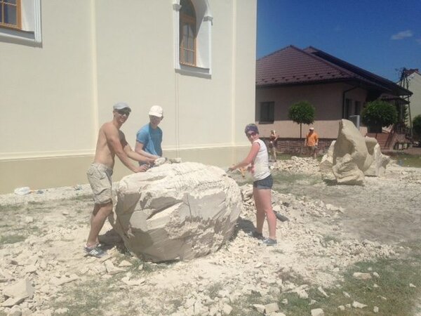 Tę pierwszą grupę nie tylko widać, ale i słychać, ponieważ młodzi rzeźbiarze tym razem pracują młotami, piłami i innymi narzędziami w rejonie Miejskiej Biblioteki Publicznej w Józefowie. Organizatorzy przygotowali dla nich ogromne kamienie, z których mają powstać trzy rzeźby, a ich wspólnym tematem będzie literatura. Będzie to pomnik książki, duch literatury, strzegący miejscowej książnicy oraz prawdopodobnie muszla w kształcie ławki. - Każda z brył, w których pracujemy ma po trzy metry sześcienne, ale mamy nadzieję, że do końca pleneru zdążymy je uformować. Dla wielu uczestników już samo zatknięcie się z tak olbrzymimi bryłami po wyjściu z tradycyjnych pracowni może być trudne, dlatego dużą rolę odgrywają m.in. studenci starszych roczników, którzy w takich pracach już brali udział - mówi Informacyjnej Agencji Samorządowej dr Wojciech Mendzelewski.