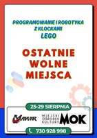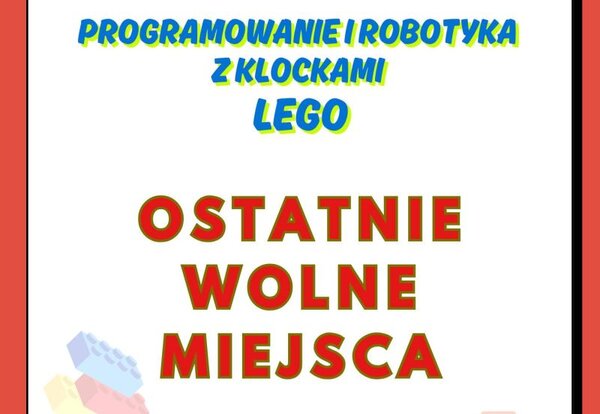 Są jeszcze wolne miejsca na wakacyjnych zajęciach programowania i robotyki z klockami LEGO w Józefowie. Spotkania będą się odbywać od 25 do 29 sierpnia w miejscowym ośrodku kultury, ale zainteresowani ta propozycją mają niewiele czasu, by się na nie zapisać.