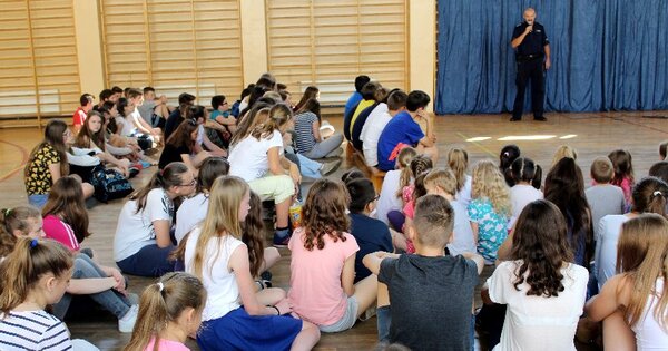 Kierownik posterunku Policji w Łabuniach aspirant sztabowy Zbigniew Byczek przypomniał młodszym i starszym uczniom jak mają się zachować, gdy są świadkami albo uczestnikami zdarzeń zagrażających życiu lub zdrowiu, gdzie powinni przekazywać informacje o niewłaściwych zachowaniach dorosłych, a także apelował o rozsądne korzystanie z przyszkolnych obiektów sportowych.