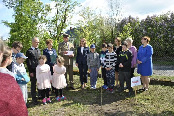 Komarów-Osada: Dąb niepodległości w szkole w Dubie