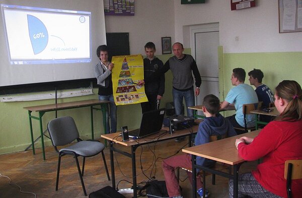 Ponadto, od początku roku w ramach kampanii "Żyj smacznie i zdrowo", w klasach odbywały się specjalne lekcje na ten temat. W akcję zaangażowali się również rodzice, którzy, m.in. wysłuchali prelekcji koordynatorki programu Tamary Bur, a także przygotowywali zdrowe kanapki na zabawę choinkową. Oprócz tego, szkolny zespół do spraw profilaktyki przeprowadził wśród uczniów ankietę żywieniową, a gimnazjaliści, wykorzystując jej wyniki oraz zdobytą na zajęciach wiedzę, wykonali w klasach gazetki tematyczne dotyczące zbilansowanej diety i jej wpływu na wygląd człowieka.