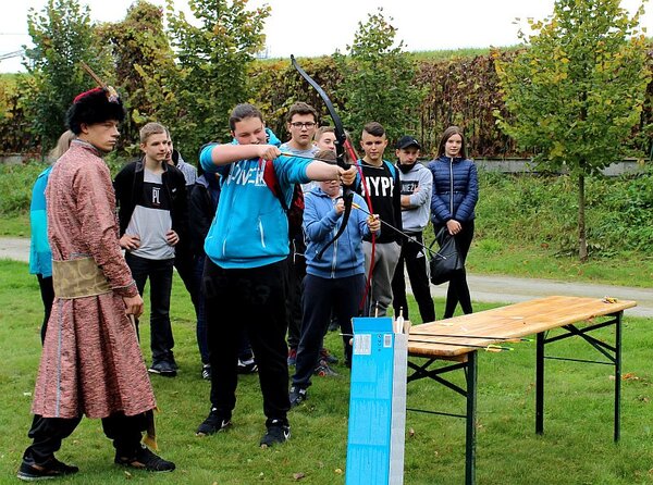Gimnazjaliści i ich opiekunowie podzielili się na dwie grupy. Pierwsza zwiedzała pałac w Baranowie Sandomierskim i znajdującą się w jego podziemiach zbrojownię rycerską. Podczas wizyty młodzież uczyła się podstawowych zasad savoir-vivre'u, poznawała zasady gry w golfa, doskonaliła strzelanie z łuku, a także - z myślą o nadchodzącej zimie - ćwiczyła na trawie… jazdę na nartach.