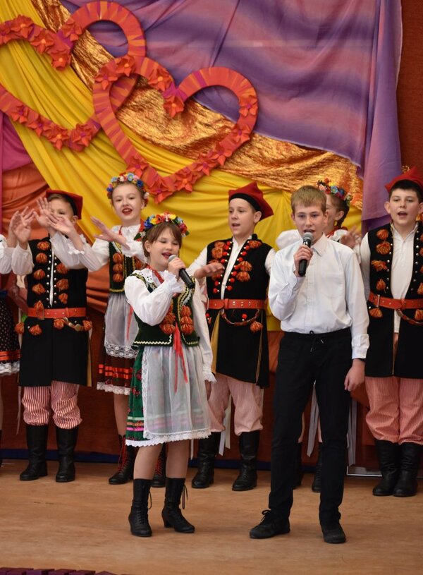 Dopełnieniem gratulacji i życzeń był występ uczniów Szkoły Podstawowej w Komarowie-Osadzie oraz symboliczna lampka szampana i tradycyjne "Sto Lat".