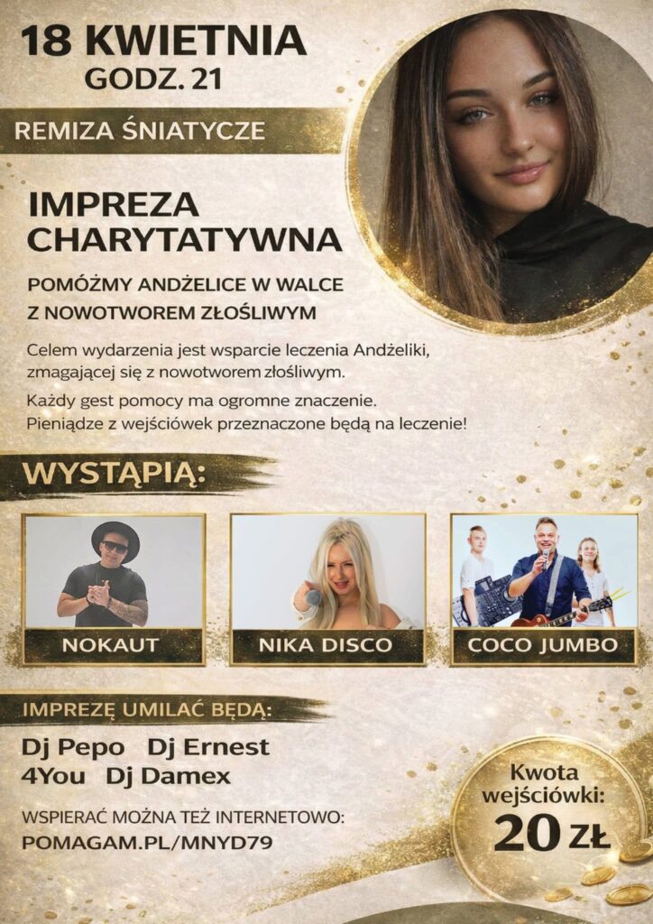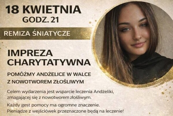 W wieku 18 lat Andżelika dowiedziała się, że ma raka wątroby. Od chwili, gdy usłyszała diagnozę dziewczyna i jej bliscy walczą z chorobą. W najbliższą niedzielę w pomoc włączą się gwiazdy i disco polo, którzy pojawią się na imprezie charytatywnej w Śniatyczach.