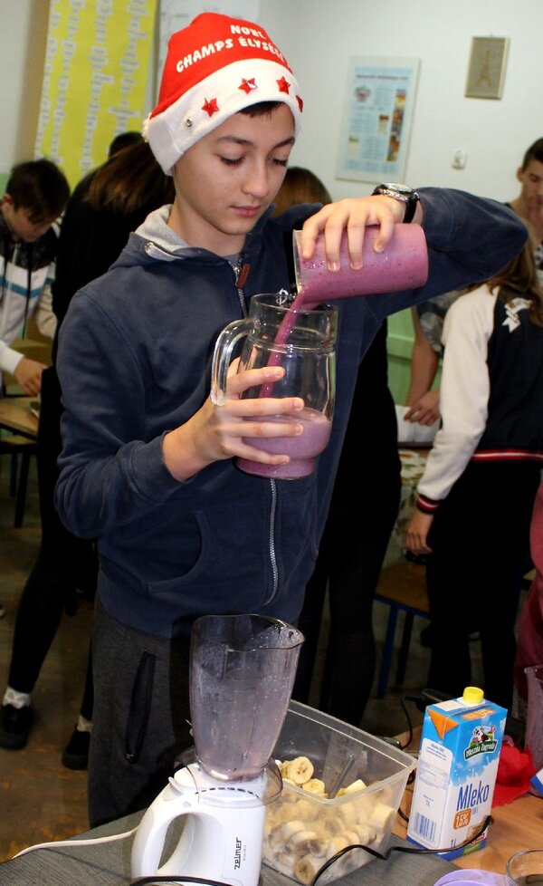 Zanim grupa wyruszyła na trasę w szkole odbyła się profilaktyczna pogadanka na temat wartości odżywczych posiłków przeznaczonych dla aktywnych biegaczy, przygotowana przez wychowawczynię klasy IIa gimnazjum Tamarę Bur. Z kolei jej wychowankowie dla swoich koleżanek i kolegów samodzielnie przyrządzili odżywczy koktajl i przygotowali smaczne kanapki.