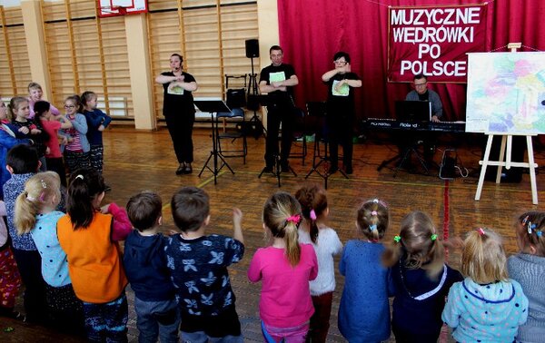 Uczniowie nie były tylko biernymi słuchaczami, ponieważ prowadzący lekcję zaangażowali ich do wspólnej zabawy m.in. poprzez śpiewanie, pracę przy mapie oraz zabawy ruchowe, które przypadły do gustu szczególnie dzieciom z oddziałów przedszkolnych i najmłodszych klas podstawówki.